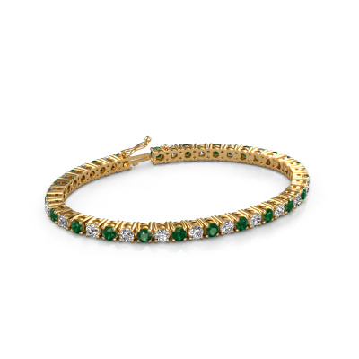 This affordable and timeless gold tennis bracelet can easily be combined with many different styles of fashion. The Karin 4 mm tennis bracelet is pave set with stunning emerald total 4 mm, which are set with great care so light reflects perfectly. Because your classic tennis bracelet is handmade, extra care is taken in finishing the tiniest details to perfection. Did you know, the tennis bracelet is named after Chris Evert, the tennis player? She lost her tennis bracelet during the US Open of 1987 and the match was stopped to retrieve her precious diamond line tennis bracelet. The tennis bracelet is called tennis bracelet ever since and many celebrities such as Serena Williams and Katy Perry have been spotted wearing them. Due to its comfort and elegance the tennis bracelet continues to be a popular piece of jewellery. A customized classic affordable tennis bracelet is the perfect gift! New exquisite designs are added daily by our team of passionate goldsmiths. And each design can be customized. Simply customize the precious metals and the colour of gemstones which will be used, for example. This makes your design of the classic Karin 4 mm tennis bracelet truly unique!Our team of talented, passionate designers add new tennis bracelet designs to our online collection daily. Our objective in doing so, is to be able to offer you a wide variety of jewels. Please feel free to request a quote if you have specific wishes for your tennis bracelet. We guarantee to make you an offer you can't refuse.By using a combination of the latest modern techniques, combined with ancient crafting, we can make all our tennis bracelets in our own studio. Each jewel is made to order. This is advantageous because we can offer you a price you won't find anywhere else.To make it easier for you, we offer a 30 day return policy. Check our terms and conditions.