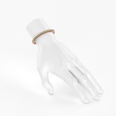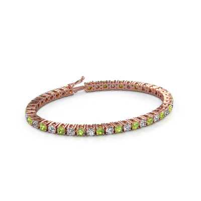 This affordable and timeless rose gold tennis bracelet can easily be combined with many different styles of fashion. The Karin 4 mm tennis bracelet is pave set with stunning peridot total 4 mm, which are set with great care so light reflects perfectly. Because your classic tennis bracelet is handmade, extra care is taken in finishing the tiniest details to perfection. Did you know, the tennis bracelet is named after Chris Evert, the tennis player? She lost her tennis bracelet during the US Open of 1987 and the match was stopped to retrieve her precious diamond line tennis bracelet. The tennis bracelet is called tennis bracelet ever since and many celebrities such as Serena Williams and Katy Perry have been spotted wearing them. Due to its comfort and elegance the tennis bracelet continues to be a popular piece of jewellery. A customized classic affordable tennis bracelet is the perfect gift! New exquisite designs are added daily by our team of passionate goldsmiths. And each design can be customized. Simply customize the precious metals and the colour of gemstones which will be used, for example. This makes your design of the classic Karin 4 mm tennis bracelet truly unique!Our team of talented, passionate designers add new tennis bracelet designs to our online collection daily. Our objective in doing so, is to be able to offer you a wide variety of jewels. Please feel free to request a quote if you have specific wishes for your tennis bracelet. We guarantee to make you an offer you can't refuse.By using a combination of the latest modern techniques, combined with ancient crafting, we can make all our tennis bracelets in our own studio. Each jewel is made to order. This is advantageous because we can offer you a price you won't find anywhere else.To make it easier for you, we offer a 30 day return policy. Check our terms and conditions.