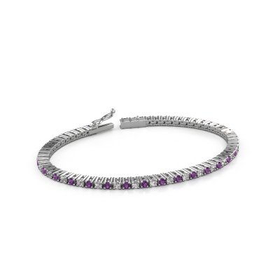 This best price and timeless white gold tennis bracelet can easily be combined with many different styles of fashion. The Karin 2.4 mm tennis bracelet is pave set with stunning amethysten total 2.4 mm, which are set with great care so light reflects perfectly. Because your classic tennis bracelet is handmade, extra care is taken in finishing the tiniest details to perfection. Did you know, the tennis bracelet is named after Chris Evert, the tennis player? She lost her tennis bracelet during the US Open of 1987 and the match was stopped to retrieve her precious diamond line tennis bracelet. The tennis bracelet is called tennis bracelet ever since and many celebrities such as Serena Williams and Katy Perry have been spotted wearing them. Due to its comfort and elegance the tennis bracelet continues to be a popular piece of jewellery. What could possibly be more beautiful than a personally designed classic tennis bracelet, handmade by yours truly? Please, feel free to customize each model by choosing different precious metals and gemstones. This makes your tennis bracelet truly unique. This tennis bracelet can be customized to your liking. It goes without saying that you can also ask us for help. We are more than willing to assist in designing your classic tennis bracelet. If you like but still have specific wishes concerning customizing your design, such as adding a gemstone which isn't mentioned in the list, feel free to contact us. We will gladly inform you on different options.Our team of talented, passionate designers add new tennis bracelet designs to our online collection daily. Our objective in doing so, is to be able to offer you a wide variety of jewels. Please feel free to request a quote if you have specific wishes for your tennis bracelet. We guarantee to make you an offer you can't refuse.Because we design and deliver our own tennis bracelets, we can offer you a tennis bracelet at a price you won't find anywhere else. A tennis bracelet is made to order, which helps prevent excess supplies, so we can make you a great price offer. We understand it feels risky, buying your tennis bracelet online, but we will gladly assist in the designing process, taking your budget into consideration.To make it easier for you, we offer a 30 day return policy. Check our terms and conditions.