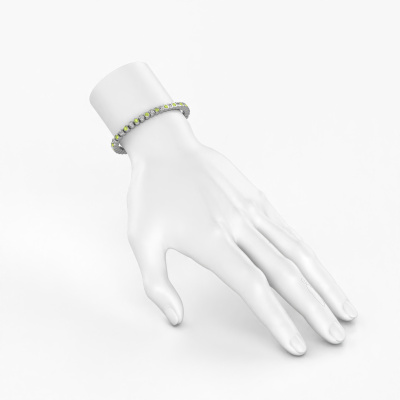 This stylish and timeless white gold tennis bracelet can easily be combined with many different styles of fashion. The Bianca 3.5 mm tennis bracelet is pave set with stunning peridot total 3.5 mm, which are set with great care so light reflects perfectly. Because your trendy tennis bracelet is handmade, extra care is taken in finishing the tiniest details to perfection. Did you know, the tennis bracelet is named after Chris Evert, the tennis player? She lost her tennis bracelet during the US Open of 1987 and the match was stopped to retrieve her precious diamond line tennis bracelet. The tennis bracelet is called tennis bracelet ever since and many celebrities such as Serena Williams and Katy Perry have been spotted wearing them. Due to its comfort and elegance the tennis bracelet continues to be a popular piece of jewellery. What could possibly be more beautiful than a personally designed trendy tennis bracelet, handmade by yours truly? Please, feel free to customize each model by choosing different precious metals and gemstones. This makes your tennis bracelet truly unique. This tennis bracelet can be customized to your liking. It goes without saying that you can also ask us for help. We are more than willing to assist in designing your trendy tennis bracelet. If you like but still have specific wishes concerning customizing your design, such as adding a gemstone which isn't mentioned in the list, feel free to contact us. We will gladly inform you on different options.Our team of talented, passionate designers add new tennis bracelet designs to our online collection daily. Our objective in doing so, is to be able to offer you a wide variety of jewels. Please feel free to request a quote if you have specific wishes for your tennis bracelet. We guarantee to make you an offer you can't refuse.By using a combination of the latest modern techniques, combined with ancient crafting, we can make all our tennis bracelets in our own studio. Each jewel is made to order. This is advantageous because we can offer you a price you won't find anywhere else.To make it easier for you, we offer a 30 day return policy. Check our terms and conditions.