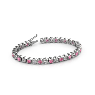 This special and timeless white gold tennis bracelet can easily be combined with many different styles of fashion. The Bianca 4 mm tennis bracelet is pave set with stunning pink sapphire total 4 mm, which are set with great care so light reflects perfectly. Because your fashionable tennis bracelet is handmade, extra care is taken in finishing the tiniest details to perfection. Did you know, the tennis bracelet is named after Chris Evert, the tennis player? She lost her tennis bracelet during the US Open of 1987 and the match was stopped to retrieve her precious diamond line tennis bracelet. The tennis bracelet is called tennis bracelet ever since and many celebrities such as Serena Williams and Katy Perry have been spotted wearing them. Due to its comfort and elegance the tennis bracelet continues to be a popular piece of jewellery. A customized fashionable special tennis bracelet is the perfect gift! New exquisite designs are added daily by our team of passionate goldsmiths. And each design can be customized. Simply customize the precious metals and the colour of gemstones which will be used, for example. This makes your design of the fashionable Bianca 4 mm tennis bracelet truly unique!Our team of talented, passionate designers add new tennis bracelet designs to our online collection daily. Our objective in doing so, is to be able to offer you a wide variety of jewels. Please feel free to request a quote if you have specific wishes for your tennis bracelet. We guarantee to make you an offer you can't refuse.Because we design and deliver our own tennis bracelets, we can offer you a tennis bracelet at a price you won't find anywhere else. A tennis bracelet is made to order, which helps prevent excess supplies, so we can make you a great price offer. We understand it feels risky, buying your tennis bracelet online, but we will gladly assist in the designing process, taking your budget into consideration.To make it easier for you, we offer a 30 day return policy. Check our terms and conditions.