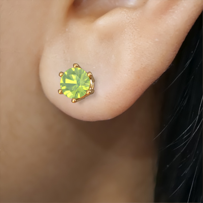 Solitaire earrings are classic yet fashionable pieces of jewellery. In solitaire earrings, the prong setting is open and only 1 stone is set, which helps reflect light on the gemstone from every angle. Because the peridot are positioned higher, these classic earrings become truly eye-catching. We carefully create each detail of these solitaire earrings by hand. Our expert goldsmiths set the peridot in these gold earrings with the utmost precision, so light reflects evenly from every angle. The earrings are set with 4.2 mm round peridot. The Fay earrings are made just for you by our master goldsmith in our own artisan studio.. As soon as you finished designing your classic earrings with our online tool, our goldsmiths will start their creative process of making your earrings. This will be done with passion and care, according ancient crafting. On top of that, our jewels are made of eco-friendly materials. If you want specific changes made to your Fay earrings, that are unavailable in our online tool, please feel free to contact our expert designers. After receiving your order, our goldsmiths will start the creative process of making your Fay earrings. We don't keep stock. This is advantageous because these costs will not be passed on to you. Therefore, we can offer jewellery at exceptionally low prices. To make it easier for you, we offer a 30 day return policy. Check our terms and conditions.