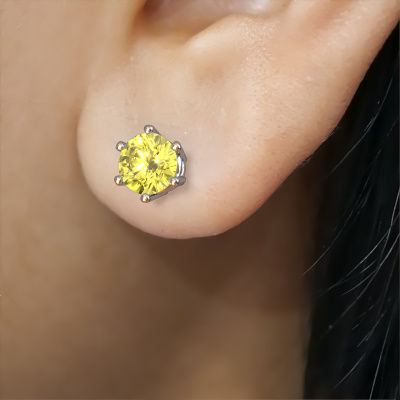 Solitaire earrings are classic yet fashionable pieces of jewellery. In solitaire earrings, the prong setting is open and only 1 stone is set, which helps reflect light on the gemstone from every angle. Because the yellow lab grown diamonds are
