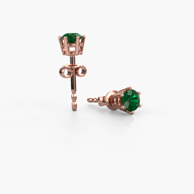 Solitaire earrings are classic yet fashionable pieces of jewellery. In solitaire earrings, the prong setting is open and only 1 stone is set, which helps reflect light on the gemstone from every angle. Because the emerald are positioned higher, these classic earrings become truly eye-catching. We carefully create each detail of these solitaire earrings by hand. Our expert goldsmiths set the emerald in these rose gold earrings with the utmost precision, so light reflects evenly from every angle. The earrings are set with 4.2 mm round emerald. The Fay earrings are made just for you by our master goldsmith in our own artisan studio.. As soon as you finished designing your classic earrings with our online tool, our goldsmiths will start their creative process of making your earrings. This will be done with passion and care, according ancient crafting. On top of that, our jewels are made of eco-friendly materials. If you want specific changes made to your Fay earrings, that are unavailable in our online tool, please feel free to contact our expert designers. After receiving your order, our goldsmiths will start the creative process of making your Fay earrings. We don't keep stock. This is advantageous because these costs will not be passed on to you. Therefore, we can offer jewellery at exceptionally low prices. To make it easier for you, we offer a 30 day return policy. Check our terms and conditions.