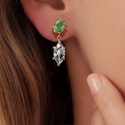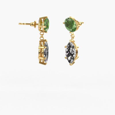 This is our set of modern Toi et Moi OVL-MRQ drop earrings. In this example the drop earrings are set with oval tourmaline green. Each of our tourmaline green gemstones is carefully selected and positioned in your drop earrings with great precision so light hits the tourmaline green from every angle. We believe these affordable gold drop earrings look best set with coloured gemstones. But that is entirely up to you. How do you like these modern gold drop earrings? Simply customize this Toi et Moi OVL-MRQ drop earrings, using our online tool. Subsequently, your personal affordable Toi et Moi OVL-MRQ drop earrings will be made by hand by our goldsmiths. Precious metals and gemstones can be customized to your liking. Do you have specific preferences which are unavailable in our online tool? Please feel free to contact us. We will customize your personal modern drop earrings to your liking.After receiving your order, our goldsmiths will passionately start the creative process of making your drop earrings in our own studio. Because we don't have a big stockpile, these costs will not be passed on to you. Our pricing is proof of that! We offer top quality jewels at lowest price, guaranteed.To make it easier for you, we offer a 30 day return policy. Check our terms and conditions.