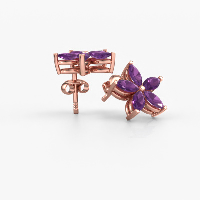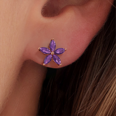 How would you describe your style? Are you looking for something slightly different? These unique cluster rose gold stud earrings are unique and created by our expert goldsmiths. These unique stud earrings are set with amethyst. Each of the amethysten is carefully selected, because we believe your stud earrings should be adorned with nothing but the most exquisite gemstones. Wouldn't you agree? The Sylvana earrings are made just for you by our master goldsmith in our own artisan studio.. Our goldsmiths passionately create your customized stud earrings to your liking with the utmost care. The rose gold set stud earrings, as shown here, can be customized using our online tool. Feel free to ask our jewel designers for assistance if you want changes made which are unavailable in our online tool. We are happy to answer your questions.Are you on a budget? Please feel free to contact us, so we can go discuss your options. We offer our stud earrings at guaranteed best price, because we make them to order. You won't find such a price anywhere else! To make it easier for you, we offer a 30 day return policy. Check our terms and conditions.