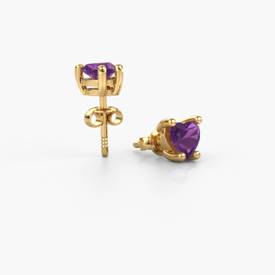 Solitaire earrings are trendy yet fashionable pieces of jewellery. In solitaire earrings, the prong setting is open and only 1 stone is set, which helps reflect light on the gemstone from every angle. Because the amethysten are positioned higher, these trendy earrings become truly eye-catching. We carefully create each detail of these solitaire earrings by hand. Our expert goldsmiths set the amethysten in these gold earrings with the utmost precision, so light reflects evenly from every angle. The earrings are set with 5 mm heart amethysten. The Sam Heart earrings are made just for you by our master goldsmith in our own artisan studio.. How do you like these trendy gold earrings? Simply customize this Sam Heart earrings, using our online tool. Subsequently, your personal heart Sam Heart earrings will be made by hand by our goldsmiths. Precious metals and gemstones can be customized to your liking. Do you have specific preferences which are unavailable in our online tool? Please feel free to contact us. We will customize your personal trendy earrings to your liking. Because we design and deliver our own earrings, we can offer you earrings at a price you won't find anywhere else. earrings are made to order, which helps prevent excess supplies, so we can make you a great price offer. We understand it feels risky, buying your earrings online, but we will gladly assist in the designing process, taking your budget into consideration. To make it easier for you, we offer a 30 day return policy. Check our terms and conditions.