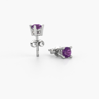 Solitaire stud earrings are classic yet fashionable pieces of jewellery. In solitaire stud earrings, the prong setting is open and only 1 stone is set, which helps reflect light on the gemstone from every angle. Because the amethysten are positioned higher, these classic stud earrings become truly eye-catching. We carefully create each detail of these solitaire stud earrings by hand. Our expert goldsmiths set the amethysten in these platinum stud earrings with the utmost precision, so light reflects evenly from every angle. The stud earrings are set with 4 mm round amethysten. The Jannette earrings are unique pieces of jewellery because they can be customized to your liking.. What could possibly be more beautiful than personally designed classic stud earrings, handmade by yours truly? Please, feel free to customize each model by choosing different precious metals and gemstones. This makes your stud earrings truly unique. These stud earrings can be customized to your liking. It goes without saying that you can also ask us for help. We are more than willing to assist in designing your classic stud earrings. If you like but still have specific wishes concerning customizing your design, such as adding a gemstone which isn't mentioned in the list, feel free to contact us. We will gladly inform you on different options. By using a combination of the latest modern techniques, combined with ancient crafting, we can make all our stud earrings in our own studio. Each jewel is made to order. This is advantageous because we can offer you a price you won't find anywhere else. To make it easier for you, we offer a 30 day return policy. Check our terms and conditions.