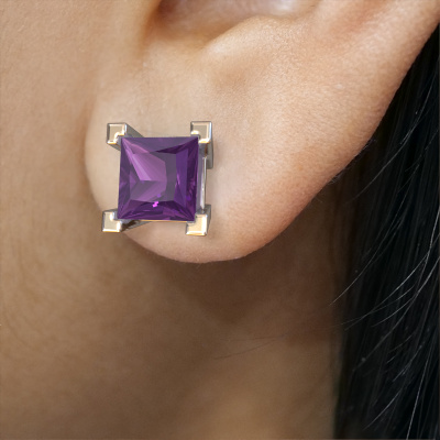 The solitaire platinum Ariane stud earrings are set with stunning princess amethysten. These stud earrings are ideally combined with coloured gemstones, but if you prefer other gemstones, feel free to choose from our collection. Our expert jewellers would love to create handmade stud earrings for you in our own crafting studio. We use a unique concept, a perfect combination of ancient craftsmanship and the latest modern techniques. This enables us to design your stud earrings to perfection. The stud earrings, as shown here, are set with amethyst 5 mm. The best part of these solitaire stud earrings is that you can customize it to your own liking. Your style, your choice, your stud earrings. On top of that, your modern platinum stud earrings will be made by hand with eco-friendly materials! Please feel free to easily customize the stud earrings, using our online tool.De Ariane earrings are passionately made by one of our master goldsmiths.Because we design and deliver our own stud earrings, we can offer you stud earrings at a price you won't find anywhere else. stud earrings are made to order, which helps prevent excess supplies, so we can make you a great price offer. We understand it feels risky, buying your stud earrings online, but we will gladly assist in the designing process, taking your budget into consideration.To make it easier for you, we offer a 30 day return policy. Check our terms and conditions.