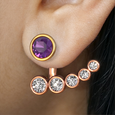 How would you describe your style? Are you looking for something slightly different? These contemporary special rose gold earrings are unique and created by our expert goldsmiths. These contemporary earrings are set with amethyst. Each of the amethysten is carefully selected, because we believe your earrings should be adorned with nothing but the most exquisite gemstones. Wouldn't you agree? The Wendy earrings are passionately made by one of our master goldsmiths.. Customized contemporary special earrings are the perfect gift! New exquisite designs are added daily by our team of passionate goldsmiths. And each design can be customized. Simply customize the precious metals and the colour of gemstones which will be used, for example. This makes your design of the contemporary Wendy earrings truly unique!Because we design and deliver our own earrings, we can offer you earrings at a price you won't find anywhere else. earrings are made to order, which helps prevent excess supplies, so we can make you a great price offer. We understand it feels risky, buying your earrings online, but we will gladly assist in the designing process, taking your budget into consideration. To make it easier for you, we offer a 30 day return policy. Check our terms and conditions.