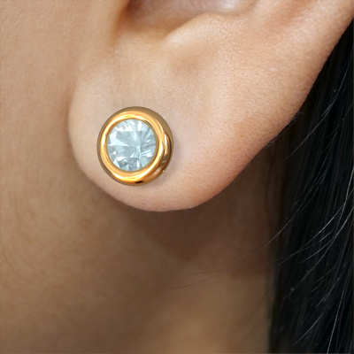 The round gold Lieke RND stud earrings are set with stunning round aquamarine. These stud earrings are ideally combined with coloured gemstones, but if you prefer other gemstones, feel free to choose from our collection. Our expert jewellers would love to create handmade stud earrings for you in our own crafting studio. We use a unique concept, a perfect combination of ancient craftsmanship and the latest modern techniques. This enables us to design your stud earrings to perfection. The stud earrings, as shown here, are set with aquamarine 4 mm. How do you like these modern gold stud earrings? Simply customize this Lieke RND stud earrings, using our online tool. Subsequently, your personal round Lieke RND stud earrings will be made by hand by our goldsmiths. Precious metals and gemstones can be customized to your liking. Do you have specific preferences which are unavailable in our online tool? Please feel free to contact us. We will customize your personal modern stud earrings to your liking.De Lieke RND earrings are made just for you by our master goldsmith in our own artisan studio.Because we design and deliver our own stud earrings, we can offer you stud earrings at a price you won't find anywhere else. stud earrings are made to order, which helps prevent excess supplies, so we can make you a great price offer. We understand it feels risky, buying your stud earrings online, but we will gladly assist in the designing process, taking your budget into consideration.To make it easier for you, we offer a 30 day return policy. Check our terms and conditions.
