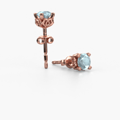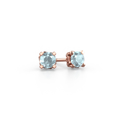 The solitaire rose gold Ize earrings are set with stunning round aquamarine. These earrings are ideally combined with coloured gemstones, but if you prefer other gemstones, feel free to choose from our collection. Our expert jewellers would love to create handmade earrings for you in our own crafting studio. We use a unique concept, a perfect combination of ancient craftsmanship and the latest modern techniques. This enables us to design your earrings to perfection. The earrings, as shown here, are set with aquamarine 5 mm. The best part of these solitaire earrings is that you can customize it to your own liking. Your style, your choice, your earrings. On top of that, your vintage rose gold earrings will be made by hand with eco-friendly materials! Please feel free to easily customize the earrings, using our online tool.De Ize earrings are made just for you by our master goldsmith in our own artisan studio.Are you on a budget? Please feel free to contact us, so we can go discuss your options. We offer our earrings at guaranteed best price, because we make them to order. You won't find such a price anywhere else!To make it easier for you, we offer a 30 day return policy. Check our terms and conditions.
