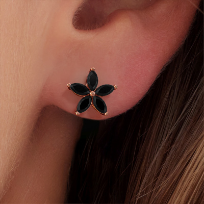 How would you describe your style? Are you looking for something slightly different? These unique cluster rose gold stud earrings are unique and created by our expert goldsmiths. These unique stud earrings are set with black diamond. Each of the black diamonds is carefully selected, because we believe your stud earrings should be adorned with nothing but the most exquisite gemstones. Wouldn't you agree? The Sylvana earrings are made just for you by our master goldsmith in our own artisan studio.. Our goldsmiths passionately create your customized stud earrings to your liking with the utmost care. The rose gold set stud earrings, as shown here, can be customized using our online tool. Feel free to ask our jewel designers for assistance if you want changes made which are unavailable in our online tool. We are happy to answer your questions.Are you on a budget? Please feel free to contact us, so we can go discuss your options. We offer our stud earrings at guaranteed best price, because we make them to order. You won't find such a price anywhere else! To make it easier for you, we offer a 30 day return policy. Check our terms and conditions.