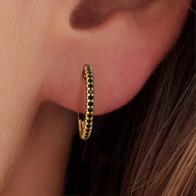 This set of best prices Jackie 15 mm A hoop earrings are beautiful small hoop earrings to finish off your look. Our expert jewellers combine the latest techniques with ancient craftsmanship. They make your hoop earrings by hand in our own crafting studio. The black diamonds of your choosing are set in your hoop earrings with the utmost precision, so light reflects evenly from every angle. In the end you get stunning, unique hoop earrings that match your own style perfectly! Take these gold hoop earrings set with black diamond 0.594 crt, for example. Our goldsmiths passionately create your customized hoop earrings to your liking with the utmost care. The gold set hoop earrings, as shown here, can be customized using our online tool. Feel free to ask our jewel designers for assistance if you want changes made which are unavailable in our online tool. We are happy to answer your questions.The Jackie 15 mm A made just for you, with great attention to detail and design.Are you on a budget? Please feel free to contact us, so we can go discuss your options. We offer our hoop earrings at guaranteed best price, because we make them to order. You won't find such a price anywhere else!To make it easier for you, we offer a 30 day return policy. Check our terms and conditions.