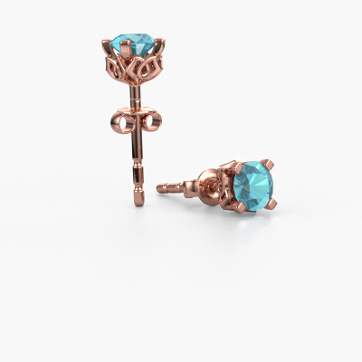 The solitaire rose gold Ize earrings are set with stunning round blue topaz. These earrings are ideally combined with coloured gemstones, but if you prefer other gemstones, feel free to choose from our collection. Our expert jewellers would love to create handmade earrings for you in our own crafting studio. We use a unique concept, a perfect combination of ancient craftsmanship and the latest modern techniques. This enables us to design your earrings to perfection. The earrings, as shown here, are set with blue topaz 5 mm. The best part of these solitaire earrings is that you can customize it to your own liking. Your style, your choice, your earrings. On top of that, your vintage rose gold earrings will be made by hand with eco-friendly materials! Please feel free to easily customize the earrings, using our online tool.De Ize earrings are made just for you by our master goldsmith in our own artisan studio.Are you on a budget? Please feel free to contact us, so we can go discuss your options. We offer our earrings at guaranteed best price, because we make them to order. You won't find such a price anywhere else!To make it easier for you, we offer a 30 day return policy. Check our terms and conditions.