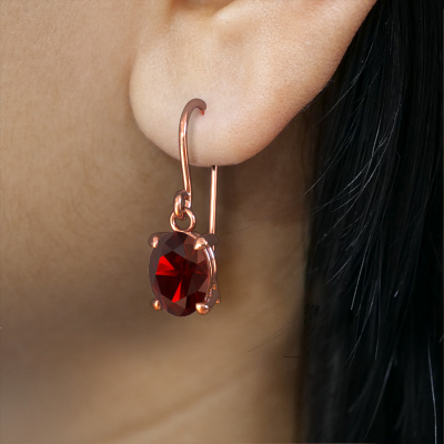 This is our set of fashionable Laurie OVL 1 drop earrings. In this example the drop earrings are set with oval garnet. Each of our garnet gemstones is carefully selected and positioned in your drop earrings with great precision so light hits the garnet from every angle. We believe these charming rose gold drop earrings look best set with coloured gemstones. But that is entirely up to you. The best part of these charming drop earrings is that you can customize it to your own liking. Your style, your choice, your drop earrings. On top of that, your fashionable rose gold drop earrings will be made by hand with eco-friendly materials! Please feel free to easily customize the drop earrings, using our online tool.By using a combination of the latest modern techniques, combined with ancient crafting, we can make all our drop earrings in our own studio. Each jewel is made to order. This is advantageous because we can offer you a price you won't find anywhere else.To make it easier for you, we offer a 30 day return policy. Check our terms and conditions.