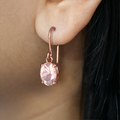 This is our set of fashionable Laurie OVL 1 drop earrings. In this example the drop earrings are set with oval morganite champagne. Each of our morganite champagne gemstones is carefully selected and positioned in your drop earrings with great precision so light hits the morganite champagne from every angle. We believe these charming rose gold drop earrings look best set with coloured gemstones. But that is entirely up to you. The best part of these charming drop earrings is that you can customize it to your own liking. Your style, your choice, your drop earrings. On top of that, your fashionable rose gold drop earrings will be made by hand with eco-friendly materials! Please feel free to easily customize the drop earrings, using our online tool.By using a combination of the latest modern techniques, combined with ancient crafting, we can make all our drop earrings in our own studio. Each jewel is made to order. This is advantageous because we can offer you a price you won't find anywhere else.To make it easier for you, we offer a 30 day return policy. Check our terms and conditions.