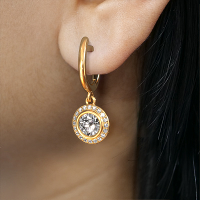What could possibly be more stunning than a pair of stunning drop earrings? These gold Noud RND drop earrings are a true eye-catcher. These flower drop earrings are set with round diamond. We collaborate with the best suppliers of gemstones and they select our gemstones with great care. Your drop earrings are made by hand in our own artisan studio by our expert goldsmiths. Our goldsmiths passionately create your customized drop earrings to your liking with the utmost care. The gold set drop earrings, as shown here, can be customized using our online tool. Feel free to ask our jewel designers for assistance if you want changes made which are unavailable in our online tool. We are happy to answer your questions.Are you on a budget? Please feel free to contact us, so we can go discuss your options. We offer our drop earrings at guaranteed best price, because we make them to order. You won't find such a price anywhere else!To make it easier for you, we offer a 30 day return policy. Check our terms and conditions.