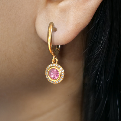 What could possibly be more stunning than a pair of stunning drop earrings? These gold Noud RND drop earrings are a true eye-catcher. These flower drop earrings are set with round pink sapphire. We collaborate with the best suppliers of gemstones and they select our gemstones with great care. Your drop earrings are made by hand in our own artisan studio by our expert goldsmiths. Our goldsmiths passionately create your customized drop earrings to your liking with the utmost care. The gold set drop earrings, as shown here, can be customized using our online tool. Feel free to ask our jewel designers for assistance if you want changes made which are unavailable in our online tool. We are happy to answer your questions.Are you on a budget? Please feel free to contact us, so we can go discuss your options. We offer our drop earrings at guaranteed best price, because we make them to order. You won't find such a price anywhere else!To make it easier for you, we offer a 30 day return policy. Check our terms and conditions.