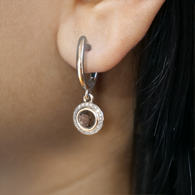 What could possibly be more stunning than a pair of stunning drop earrings? These white gold Noud RND drop earrings are a true eye-catcher. These flower drop earrings are set with round smokey quartz. We collaborate with the best suppliers of gemstones and they select our gemstones with great care. Your drop earrings are made by hand in our own artisan studio by our expert goldsmiths. Our goldsmiths passionately create your customized drop earrings to your liking with the utmost care. The white gold set drop earrings, as shown here, can be customized using our online tool. Feel free to ask our jewel designers for assistance if you want changes made which are unavailable in our online tool. We are happy to answer your questions.Are you on a budget? Please feel free to contact us, so we can go discuss your options. We offer our drop earrings at guaranteed best price, because we make them to order. You won't find such a price anywhere else!To make it easier for you, we offer a 30 day return policy. Check our terms and conditions.