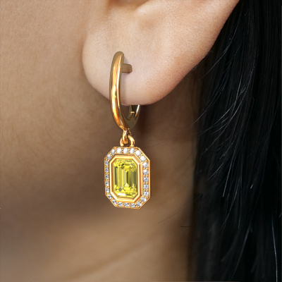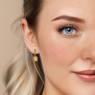 If you are looking for classic and personal drop earrings, then these will fit you perfectly. You have the option to add your birthstones to these drop earrings. Each month has its own birthstone. You may use your own birthstone gemstone or that of your children. A priceless gift, even if it is for yourself. Our expert jeweller will set the selected stones in your drop earrings with utter precision, so light reflects evenly from every angle. Here, 6x4 mm emerald cut yellow lab grown diamonds gemstones were used to adorn these gold special Noud EME drop earrings. The Noud EME earrings are passionately made by one of our master goldsmiths.. The best part of these special drop earrings is that you can customize it to your own liking. Your style, your choice, your drop earrings. On top of that, your classic gold drop earrings will be made by hand with eco-friendly materials! Please feel free to easily customize the drop earrings, using our online tool. By using our modern techniques, we can design and customize the finest quality jewels with the utmost care for you. Our drop earrings are always priced 30 percent lower than other jewellers. We make drop earrings to order so we don't have to maintain a large stock. If you have a certain budget, we are more than happy to advice you accordingly.To make it easier for you, we offer a 30 day return policy. Check our terms and conditions.