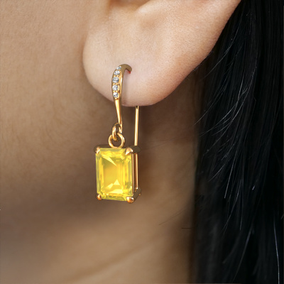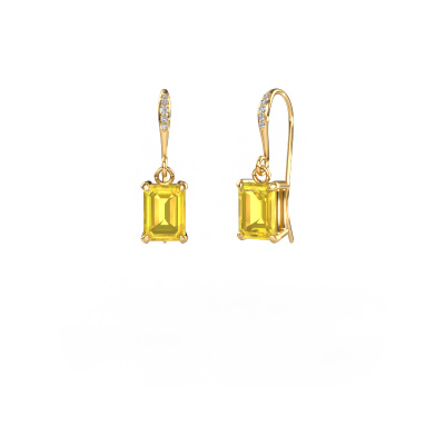 What could possibly be more stunning than a pair of stunning drop earrings? These gold Laurie EME 2 drop earrings are a true eye-catcher. These solitaire drop earrings are set with emerald cut yellow sapphire. We collaborate with the best suppliers of gemstones and they select our gemstones with great care. Your drop earrings are made by hand in our own artisan studio by our expert goldsmiths. As soon as you finished designing your classic drop earrings with our online tool, our goldsmiths will start their creative process of making your drop earrings. This will be done with passion and care, according ancient crafting. On top of that, our jewels are made of eco-friendly materials. If you want specific changes made to your Laurie EME 2 drop earrings, that are unavailable in our online tool, please feel free to contact our expert designers.After receiving your order, our goldsmiths will start the creative process of making your Laurie EME 2 drop earrings. We don't keep stock. This is advantageous because these costs will not be passed on to you. Therefore, we can offer jewellery at exceptionally low prices.To make it easier for you, we offer a 30 day return policy. Check our terms and conditions.