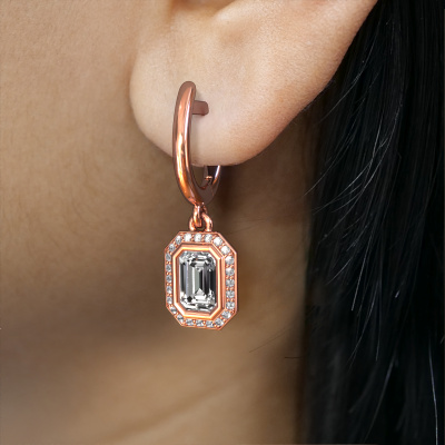 If you are looking for classic and personal drop earrings, then these will fit you perfectly. You have the option to add your birthstones to these drop earrings. Each month has its own birthstone. You may use your own birthstone gemstone or that of your children. A priceless gift, even if it is for yourself. Our expert jeweller will set the selected stones in your drop earrings with utter precision, so light reflects evenly from every angle. Here, 0.70 crt emerald cut diamonds gemstones were used to adorn these rose gold special Noud EME drop earrings. The Noud EME earrings are passionately made by one of our master goldsmiths.. The best part of these special drop earrings is that you can customize it to your own liking. Your style, your choice, your drop earrings. On top of that, your classic rose gold drop earrings will be made by hand with eco-friendly materials! Please feel free to easily customize the drop earrings, using our online tool. By using our modern techniques, we can design and customize the finest quality jewels with the utmost care for you. Our drop earrings are always priced 30 percent lower than other jewellers. We make drop earrings to order so we don't have to maintain a large stock. If you have a certain budget, we are more than happy to advice you accordingly.To make it easier for you, we offer a 30 day return policy. Check our terms and conditions.