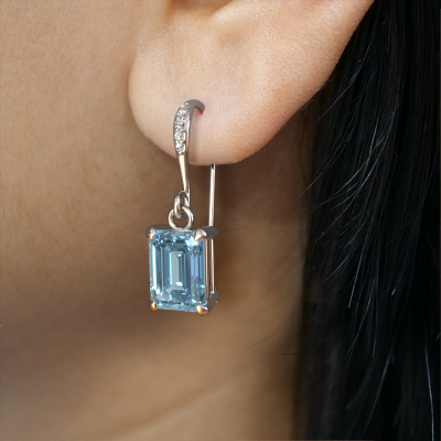 What could possibly be more stunning than a pair of stunning drop earrings? These white gold Laurie EME 2 drop earrings are a true eye-catcher. These solitaire drop earrings are set with emerald cut blue lab grown diamond. We collaborate with the best suppliers of gemstones and they select our gemstones with great care. Your drop earrings are made by hand in our own artisan studio by our expert goldsmiths. As soon as you finished designing your classic drop earrings with our online tool, our goldsmiths will start their creative process of making your drop earrings. This will be done with passion and care, according ancient crafting. On top of that, our jewels are made of eco-friendly materials. If you want specific changes made to your Laurie EME 2 drop earrings, that are unavailable in our online tool, please feel free to contact our expert designers.After receiving your order, our goldsmiths will start the creative process of making your Laurie EME 2 drop earrings. We don't keep stock. This is advantageous because these costs will not be passed on to you. Therefore, we can offer jewellery at exceptionally low prices.To make it easier for you, we offer a 30 day return policy. Check our terms and conditions.