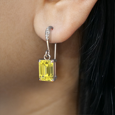What could possibly be more stunning than a pair of stunning drop earrings? These white gold Laurie EME 2 drop earrings are a true eye-catcher. These solitaire drop earrings are set with emerald cut yellow lab grown diamond. We collaborate with the best suppliers of gemstones and they select our gemstones with great care. Your drop earrings are made by hand in our own artisan studio by our expert goldsmiths. As soon as you finished designing your classic drop earrings with our online tool, our goldsmiths will start their creative process of making your drop earrings. This will be done with passion and care, according ancient crafting. On top of that, our jewels are made of eco-friendly materials. If you want specific changes made to your Laurie EME 2 drop earrings, that are unavailable in our online tool, please feel free to contact our expert designers.After receiving your order, our goldsmiths will start the creative process of making your Laurie EME 2 drop earrings. We don't keep stock. This is advantageous because these costs will not be passed on to you. Therefore, we can offer jewellery at exceptionally low prices.To make it easier for you, we offer a 30 day return policy. Check our terms and conditions.