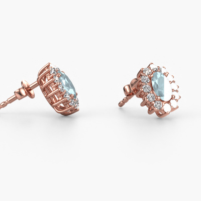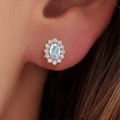 If you are looking for classic and personal earrings, then these will fit you perfectly. You have the option to add your birthstones to these earrings. Each month has its own birthstone. You may use your own birthstone gemstone or that of your children. A priceless gift, even if it is for yourself. Our expert jeweller will set the selected stones in your earrings with utter precision, so light reflects evenly from every angle. Here, 6x4 mm oval aquamarine gemstones were used to adorn these rose gold cluster Margien earrings. The Margien earrings are unique pieces of jewellery because they can be customized to your liking.. The best part of these cluster earrings is that you can customize it to your own liking. Your style, your choice, your earrings. On top of that, your classic rose gold earrings will be made by hand with eco-friendly materials! Please feel free to easily customize the earrings, using our online tool. Are you on a budget? Please feel free to contact us, so we can go discuss your options. We offer our earrings at guaranteed best price, because we make them to order. You won't find such a price anywhere else!To make it easier for you, we offer a 30 day return policy. Check our terms and conditions.