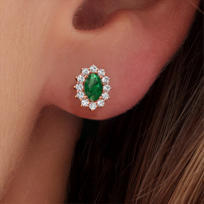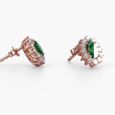If you are looking for classic and personal earrings, then these will fit you perfectly. You have the option to add your birthstones to these earrings. Each month has its own birthstone. You may use your own birthstone gemstone or that of your children. A priceless gift, even if it is for yourself. Our expert jeweller will set the selected stones in your earrings with utter precision, so light reflects evenly from every angle. Here, 6x4 mm oval emerald gemstones were used to adorn these rose gold cluster Margien earrings. The Margien earrings are unique pieces of jewellery because they can be customized to your liking.. The best part of these cluster earrings is that you can customize it to your own liking. Your style, your choice, your earrings. On top of that, your classic rose gold earrings will be made by hand with eco-friendly materials! Please feel free to easily customize the earrings, using our online tool. Are you on a budget? Please feel free to contact us, so we can go discuss your options. We offer our earrings at guaranteed best price, because we make them to order. You won't find such a price anywhere else!To make it easier for you, we offer a 30 day return policy. Check our terms and conditions.