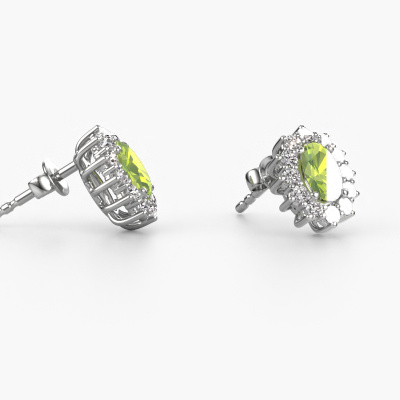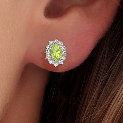 If you are looking for classic and personal earrings, then these will fit you perfectly. You have the option to add your birthstones to these earrings. Each month has its own birthstone. You may use your own birthstone gemstone or that of your children. A priceless gift, even if it is for yourself. Our expert jeweller will set the selected stones in your earrings with utter precision, so light reflects evenly from every angle. Here, 6x4 mm oval peridot gemstones were used to adorn these white gold cluster Margien earrings. The Margien earrings are unique pieces of jewellery because they can be customized to your liking.. The best part of these cluster earrings is that you can customize it to your own liking. Your style, your choice, your earrings. On top of that, your classic white gold earrings will be made by hand with eco-friendly materials! Please feel free to easily customize the earrings, using our online tool. Are you on a budget? Please feel free to contact us, so we can go discuss your options. We offer our earrings at guaranteed best price, because we make them to order. You won't find such a price anywhere else!To make it easier for you, we offer a 30 day return policy. Check our terms and conditions.