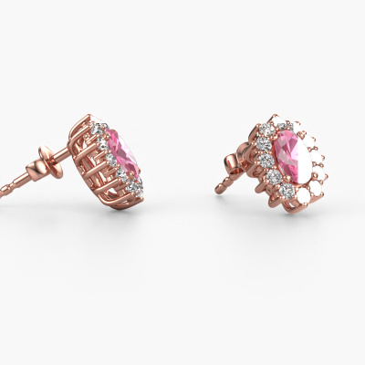 If you are looking for classic and personal earrings, then these will fit you perfectly. You have the option to add your birthstones to these earrings. Each month has its own birthstone. You may use your own birthstone gemstone or that of your children. A priceless gift, even if it is for yourself. Our expert jeweller will set the selected stones in your earrings with utter precision, so light reflects evenly from every angle. Here, 6x4 mm oval pink sapphire gemstones were used to adorn these rose gold cluster Margien earrings. The Margien earrings are unique pieces of jewellery because they can be customized to your liking.. The best part of these cluster earrings is that you can customize it to your own liking. Your style, your choice, your earrings. On top of that, your classic rose gold earrings will be made by hand with eco-friendly materials! Please feel free to easily customize the earrings, using our online tool. Are you on a budget? Please feel free to contact us, so we can go discuss your options. We offer our earrings at guaranteed best price, because we make them to order. You won't find such a price anywhere else!To make it easier for you, we offer a 30 day return policy. Check our terms and conditions.