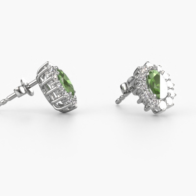 If you are looking for classic and personal earrings, then these will fit you perfectly. You have the option to add your birthstones to these earrings. Each month has its own birthstone. You may use your own birthstone gemstone or that of your children. A priceless gift, even if it is for yourself. Our expert jeweller will set the selected stones in your earrings with utter precision, so light reflects evenly from every angle. Here, 6x4 mm oval tourmaline green gemstones were used to adorn these white gold cluster Margien earrings. The Margien earrings are unique pieces of jewellery because they can be customized to your liking.. The best part of these cluster earrings is that you can customize it to your own liking. Your style, your choice, your earrings. On top of that, your classic white gold earrings will be made by hand with eco-friendly materials! Please feel free to easily customize the earrings, using our online tool. Are you on a budget? Please feel free to contact us, so we can go discuss your options. We offer our earrings at guaranteed best price, because we make them to order. You won't find such a price anywhere else!To make it easier for you, we offer a 30 day return policy. Check our terms and conditions.
