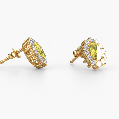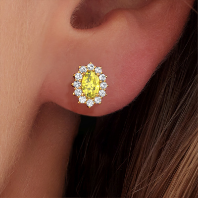 If you are looking for classic and personal earrings, then these will fit you perfectly. You have the option to add your birthstones to these earrings. Each month has its own birthstone. You may use your own birthstone gemstone or that of your children. A priceless gift, even if it is for yourself. Our expert jeweller will set the selected stones in your earrings with utter precision, so light reflects evenly from every angle. Here, 6x4 mm oval yellow lab grown diamonds gemstones were used to adorn these gold cluster Margien earrings. The Margien earrings are unique pieces of jewellery because they can be customized to your liking.. The best part of these cluster earrings is that you can customize it to your own liking. Your style, your choice, your earrings. On top of that, your classic gold earrings will be made by hand with eco-friendly materials! Please feel free to easily customize the earrings, using our online tool. Are you on a budget? Please feel free to contact us, so we can go discuss your options. We offer our earrings at guaranteed best price, because we make them to order. You won't find such a price anywhere else!To make it easier for you, we offer a 30 day return policy. Check our terms and conditions.