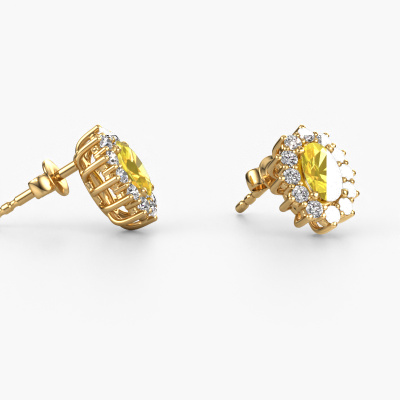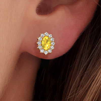 If you are looking for classic and personal earrings, then these will fit you perfectly. You have the option to add your birthstones to these earrings. Each month has its own birthstone. You may use your own birthstone gemstone or that of your children. A priceless gift, even if it is for yourself. Our expert jeweller will set the selected stones in your earrings with utter precision, so light reflects evenly from every angle. Here, 6x4 mm oval yellow sapphire gemstones were used to adorn these gold cluster Margien earrings. The Margien earrings are unique pieces of jewellery because they can be customized to your liking.. The best part of these cluster earrings is that you can customize it to your own liking. Your style, your choice, your earrings. On top of that, your classic gold earrings will be made by hand with eco-friendly materials! Please feel free to easily customize the earrings, using our online tool. Are you on a budget? Please feel free to contact us, so we can go discuss your options. We offer our earrings at guaranteed best price, because we make them to order. You won't find such a price anywhere else!To make it easier for you, we offer a 30 day return policy. Check our terms and conditions.