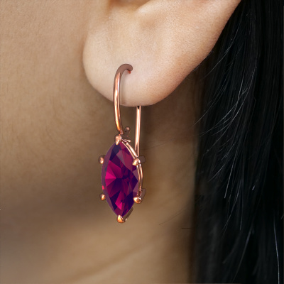 If you are looking for trendy and personal drop earrings, then these will fit you perfectly. You have the option to add your birthstones to these drop earrings. Each month has its own birthstone. You may use your own birthstone gemstone or that of your children. A priceless gift, even if it is for yourself. Our expert jeweller will set the selected stones in your drop earrings with utter precision, so light reflects evenly from every angle. Here, 12x6 mm marquise rhodolite gemstones were used to adorn these rose gold daring Cleo MRQ drop earrings. The Cleo MRQ earrings are made to embellish your ears. Each jewel is lovingly made by hand by our goldsmiths.. What could possibly be more beautiful than personally designed trendy drop earrings, handmade by yours truly? Please, feel free to customize each model by choosing different precious metals and gemstones. This makes your drop earrings truly unique. These drop earrings can be customized to your liking. It goes without saying that you can also ask us for help. We are more than willing to assist in designing your trendy drop earrings. If you like but still have specific wishes concerning customizing your design, such as adding a gemstone which isn't mentioned in the list, feel free to contact us. We will gladly inform you on different options. Because we design and deliver our own drop earrings, we can offer you drop earrings at a price you won't find anywhere else. drop earrings are made to order, which helps prevent excess supplies, so we can make you a great price offer. We understand it feels risky, buying your drop earrings online, but we will gladly assist in the designing process, taking your budget into consideration.To make it easier for you, we offer a 30 day return policy. Check our terms and conditions.