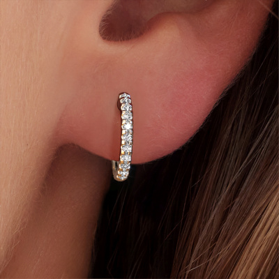 Each modern woman should own her own pair of classic hoop earrings. Buy them from DiamondsByMe. In order to create our exquisite jewels, our expert goldsmiths use the best precious metals and the finest gemstones. Take this classic white gold diamond set of Jackie 12.5 mm A hoop earrings, for example. Each diamond is selected with great care, because we believe your hoop earrings should only be adorned with the finest diamonds gemstones. Our artisan goldsmiths create your hoop earrings in our own crafting studio and they set the diamond in the hoop earrings with the utmost care. Subsequently, they are crafted and polished until it is evident: the perfect hoop earrings are done! The Jackie 12.5 mm A earrings are passionately made by one of our master goldsmiths.. Customized classic elegant hoop earrings are the perfect gift! New exquisite designs are added daily by our team of passionate goldsmiths. And each design can be customized. Simply customize the precious metals and the colour of gemstones which will be used, for example. This makes your design of the classic Jackie 12.5 mm A hoop earrings truly unique! After receiving your order, our goldsmiths will passionately start the creative process of making your hoop earrings in our own studio. Because we don't have a big stockpile, these costs will not be passed on to you. Our pricing is proof of that! We offer top quality jewels at lowest price, guaranteed. To make it easier for you, we offer a 30 day return policy. Check our terms and conditions.