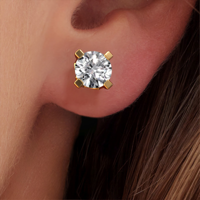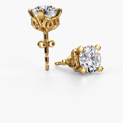The solitaire gold Ize earrings are set with stunning round diamonds. These earrings are ideally combined with coloured gemstones, but if you prefer other gemstones, feel free to choose from our collection. Our expert jewellers would love to create handmade earrings for you in our own crafting studio. We use a unique concept, a perfect combination of ancient craftsmanship and the latest modern techniques. This enables us to design your earrings to perfection. The earrings, as shown here, are set with diamond 4.00 crt. The best part of these solitaire earrings is that you can customize it to your own liking. Your style, your choice, your earrings. On top of that, your vintage gold earrings will be made by hand with eco-friendly materials! Please feel free to easily customize the earrings, using our online tool.De Ize earrings are made just for you by our master goldsmith in our own artisan studio.Are you on a budget? Please feel free to contact us, so we can go discuss your options. We offer our earrings at guaranteed best price, because we make them to order. You won't find such a price anywhere else!To make it easier for you, we offer a 30 day return policy. Check our terms and conditions.