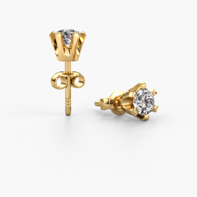 Solitaire stud earrings are classic yet fashionable pieces of jewellery. In solitaire stud earrings, the prong setting is open and only 1 stone is set, which helps reflect light on the gemstone from every angle. Because the diamonds are positioned higher, these classic stud earrings become truly eye-catching. We carefully create each detail of these solitaire stud earrings by hand. Our expert goldsmiths set the diamonds in these gold stud earrings with the utmost precision, so light reflects evenly from every angle. The stud earrings are set with 0.30 crt round diamonds. The Shana earrings are made just for you by our master goldsmith in our own artisan studio.. Our goldsmiths passionately create your customized stud earrings to your liking with the utmost care. The gold set stud earrings, as shown here, can be customized using our online tool. Feel free to ask our jewel designers for assistance if you want changes made which are unavailable in our online tool. We are happy to answer your questions. Are you on a budget? Please feel free to contact us, so we can go discuss your options. We offer our stud earrings at guaranteed best price, because we make them to order. You won't find such a price anywhere else! To make it easier for you, we offer a 30 day return policy. Check our terms and conditions.