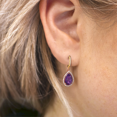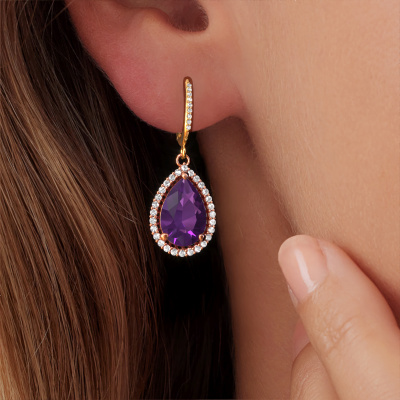 If you are looking for exclusive and personal drop earrings, then these will fit you perfectly. You have the option to add your birthstones to these drop earrings. Each month has its own birthstone. You may use your own birthstone gemstone or that of your children. A priceless gift, even if it is for yourself. Our expert jeweller will set the selected stones in your drop earrings with utter precision, so light reflects evenly from every angle. Here, 12x8 mm pear amethysten gemstones were used to adorn these rose gold drop Tilly per 4 drop earrings. The Tilly per 4 earrings are passionately made by one of our master goldsmiths.. The best part of these drop drop earrings is that you can customize it to your own liking. Your style, your choice, your drop earrings. On top of that, your exclusive rose gold drop earrings will be made by hand with eco-friendly materials! Please feel free to easily customize the drop earrings, using our online tool. By using our modern techniques, we can design and customize the finest quality jewels with the utmost care for you. Our drop earrings are always priced 30 percent lower than other jewellers. We make drop earrings to order so we don't have to maintain a large stock. If you have a certain budget, we are more than happy to advice you accordingly.To make it easier for you, we offer a 30 day return policy. Check our terms and conditions.
