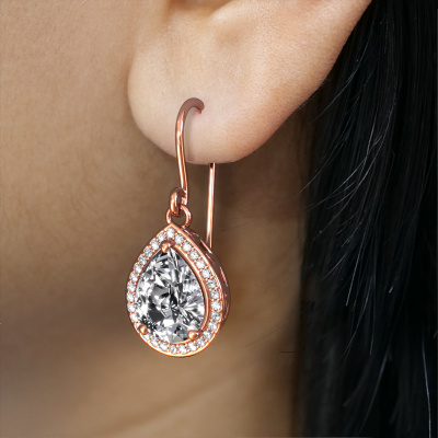 This is our set of trendy Beverlee 1 drop earrings. In this example the drop earrings are set with pear diamond. Each of our diamonds gemstones is carefully selected and positioned in your drop earrings with great precision so light hits the diamond from every angle. We believe these drop rose gold drop earrings look best set with coloured gemstones. But that is entirely up to you. Our goldsmiths passionately create your customized drop earrings to your liking with the utmost care. The rose gold set drop earrings, as shown here, can be customized using our online tool. Feel free to ask our jewel designers for assistance if you want changes made which are unavailable in our online tool. We are happy to answer your questions.After receiving your order, our goldsmiths will passionately start the creative process of making your drop earrings in our own studio. Because we don't have a big stockpile, these costs will not be passed on to you. Our pricing is proof of that! We offer top quality jewels at lowest price, guaranteed.To make it easier for you, we offer a 30 day return policy. Check our terms and conditions.