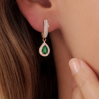 With a pair of exclusive drop earrings, every woman truly stands out. At DiamondsByMe, we create exclusive and extraordinary jewellery and we make use of the finest precious metals and gemstones. These exclusive rose gold drop earrings are a true work of art! Each tiny detail has been made with patience and passion by our expert jeweller. This requires a keen eye and skilful hand in order for the ring to be carefully created to perfection. And this is exactly what our expert jewellers strive for, perfection! The exquisite emerald are set in a way making them seem to shine even brighter. This gives the drop earrings an extra glamorous look. Shown above are our rose gold Barbar 2 drop earrings, set with pear emerald. The Barbar 2 earrings are made by a team of passionate goldsmiths and designers. This will make your unique crown jewel eye-catching.. How do you like these exclusive rose gold drop earrings? Simply customize this Barbar 2 drop earrings, using our online tool. Subsequently, your personal drop Barbar 2 drop earrings will be made by hand by our goldsmiths. Precious metals and gemstones can be customized to your liking. Do you have specific preferences which are unavailable in our online tool? Please feel free to contact us. We will customize your personal exclusive drop earrings to your liking. After receiving your order, our goldsmiths will start the creative process of making your Barbar 2 drop earrings. We don't keep stock. This is advantageous because these costs will not be passed on to you. Therefore, we can offer jewellery at exceptionally low prices. To make it easier for you, we offer a 30 day return policy. Check our terms and conditions.