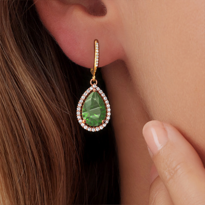 If you are looking for exclusive and personal drop earrings, then these will fit you perfectly. You have the option to add your birthstones to these drop earrings. Each month has its own birthstone. You may use your own birthstone gemstone or that of your children. A priceless gift, even if it is for yourself. Our expert jeweller will set the selected stones in your drop earrings with utter precision, so light reflects evenly from every angle. Here, 12x8 mm pear tourmaline green gemstones were used to adorn these rose gold drop Tilly per 4 drop earrings. The Tilly per 4 earrings are passionately made by one of our master goldsmiths.. The best part of these drop drop earrings is that you can customize it to your own liking. Your style, your choice, your drop earrings. On top of that, your exclusive rose gold drop earrings will be made by hand with eco-friendly materials! Please feel free to easily customize the drop earrings, using our online tool. By using our modern techniques, we can design and customize the finest quality jewels with the utmost care for you. Our drop earrings are always priced 30 percent lower than other jewellers. We make drop earrings to order so we don't have to maintain a large stock. If you have a certain budget, we are more than happy to advice you accordingly.To make it easier for you, we offer a 30 day return policy. Check our terms and conditions.