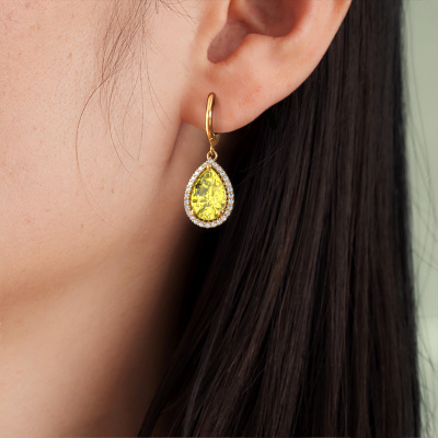 With a pair of exclusive drop earrings, every woman truly stands out. At DiamondsByMe, we create exclusive and extraordinary jewellery and we make use of the finest precious metals and gemstones. These exclusive gold drop earrings are a true work of art! Each tiny detail has been made with patience and passion by our expert jeweller. This requires a keen eye and skilful hand in order for the ring to be carefully created to perfection. And this is exactly what our expert jewellers strive for, perfection! The exquisite yellow lab grown diamonds are set in a way making them seem to shine even brighter. This gives the drop earrings an extra glamorous look. Shown above are our gold Tilly per 3 drop earrings, set with pear yellow lab grown diamond. The Tilly per 3 earrings are made just for you by our master goldsmith in our own artisan studio.. The best part of these drop drop earrings is that you can customize it to your own liking. Your style, your choice, your drop earrings. On top of that, your exclusive gold drop earrings will be made by hand with eco-friendly materials! Please feel free to easily customize the drop earrings, using our online tool. Because we design and deliver our own drop earrings, we can offer you drop earrings at a price you won't find anywhere else. drop earrings are made to order, which helps prevent excess supplies, so we can make you a great price offer. We understand it feels risky, buying your drop earrings online, but we will gladly assist in the designing process, taking your budget into consideration. To make it easier for you, we offer a 30 day return policy. Check our terms and conditions.
