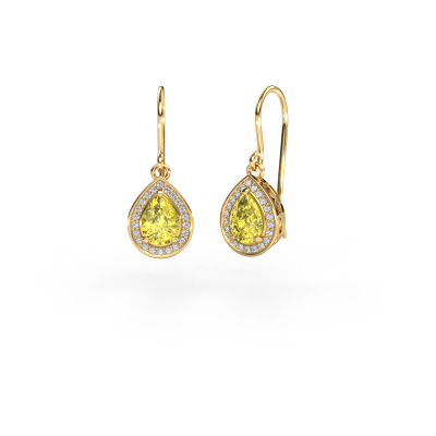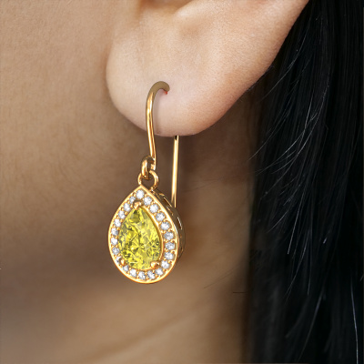 This is our set of trendy Beverlee 1 drop earrings. In this example the drop earrings are set with pear yellow lab grown diamond. Each of our yellow lab grown diamonds gemstones is carefully selected and positioned in your drop earrings with great precision so light hits the yellow lab grown diamond from every angle. We believe these drop gold drop earrings look best set with coloured gemstones. But that is entirely up to you. Our goldsmiths passionately create your customized drop earrings to your liking with the utmost care. The gold set drop earrings, as shown here, can be customized using our online tool. Feel free to ask our jewel designers for assistance if you want changes made which are unavailable in our online tool. We are happy to answer your questions.After receiving your order, our goldsmiths will passionately start the creative process of making your drop earrings in our own studio. Because we don't have a big stockpile, these costs will not be passed on to you. Our pricing is proof of that! We offer top quality jewels at lowest price, guaranteed.To make it easier for you, we offer a 30 day return policy. Check our terms and conditions.