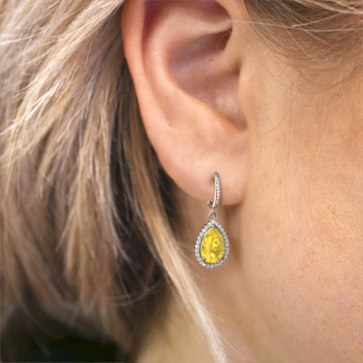 If you are looking for exclusive and personal drop earrings, then these will fit you perfectly. You have the option to add your birthstones to these drop earrings. Each month has its own birthstone. You may use your own birthstone gemstone or that of your children. A priceless gift, even if it is for yourself. Our expert jeweller will set the selected stones in your drop earrings with utter precision, so light reflects evenly from every angle. Here, 12x8 mm pear yellow sapphire gemstones were used to adorn these platinum drop Tilly per 4 drop earrings. The Tilly per 4 earrings are passionately made by one of our master goldsmiths.. The best part of these drop drop earrings is that you can customize it to your own liking. Your style, your choice, your drop earrings. On top of that, your exclusive platinum drop earrings will be made by hand with eco-friendly materials! Please feel free to easily customize the drop earrings, using our online tool. By using our modern techniques, we can design and customize the finest quality jewels with the utmost care for you. Our drop earrings are always priced 30 percent lower than other jewellers. We make drop earrings to order so we don't have to maintain a large stock. If you have a certain budget, we are more than happy to advice you accordingly.To make it easier for you, we offer a 30 day return policy. Check our terms and conditions.