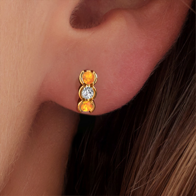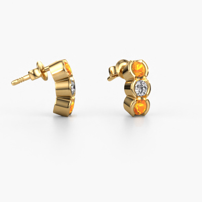 How would you describe your style? Are you looking for something slightly different? These trendy elegant gold earrings are unique and created by our expert goldsmiths. These trendy earrings are set with citrin. Each of the citrin is carefully selected, because we believe your earrings should be adorned with nothing but the most exquisite gemstones. Wouldn't you agree? The Lotte made just for you, with great attention to detail and design.. Our goldsmiths passionately create your customized earrings to your liking with the utmost care. The gold set earrings, as shown here, can be customized using our online tool. Feel free to ask our jewel designers for assistance if you want changes made which are unavailable in our online tool. We are happy to answer your questions.By using a combination of the latest modern techniques, combined with ancient crafting, we can make all our earrings in our own studio. Each jewel is made to order. This is advantageous because we can offer you a price you won't find anywhere else. To make it easier for you, we offer a 30 day return policy. Check our terms and conditions.