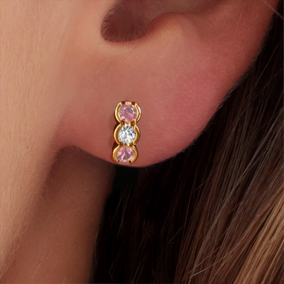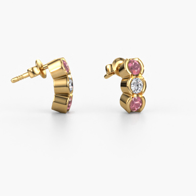 How would you describe your style? Are you looking for something slightly different? These trendy elegant gold earrings are unique and created by our expert goldsmiths. These trendy earrings are set with tourmaline pink. Each of the tourmaline pink is carefully selected, because we believe your earrings should be adorned with nothing but the most exquisite gemstones. Wouldn't you agree? The Lotte made just for you, with great attention to detail and design.. Our goldsmiths passionately create your customized earrings to your liking with the utmost care. The gold set earrings, as shown here, can be customized using our online tool. Feel free to ask our jewel designers for assistance if you want changes made which are unavailable in our online tool. We are happy to answer your questions.By using a combination of the latest modern techniques, combined with ancient crafting, we can make all our earrings in our own studio. Each jewel is made to order. This is advantageous because we can offer you a price you won't find anywhere else. To make it easier for you, we offer a 30 day return policy. Check our terms and conditions.