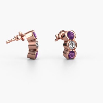 How would you describe your style? Are you looking for something slightly different? These trendy elegant rose gold earrings are unique and created by our expert goldsmiths. These trendy earrings are set with amethyst. Each of the amethysten is carefully selected, because we believe your earrings should be adorned with nothing but the most exquisite gemstones. Wouldn't you agree? The Lotte made just for you, with great attention to detail and design.. Our goldsmiths passionately create your customized earrings to your liking with the utmost care. The rose gold set earrings, as shown here, can be customized using our online tool. Feel free to ask our jewel designers for assistance if you want changes made which are unavailable in our online tool. We are happy to answer your questions.By using a combination of the latest modern techniques, combined with ancient crafting, we can make all our earrings in our own studio. Each jewel is made to order. This is advantageous because we can offer you a price you won't find anywhere else. To make it easier for you, we offer a 30 day return policy. Check our terms and conditions.